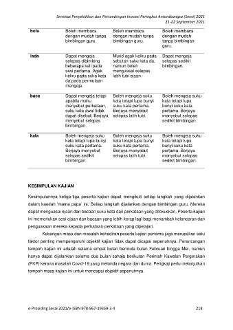 dapat menguasai ejaan dan bacaan suku kata dan perkataan yang difokuskan. Peserta kajian