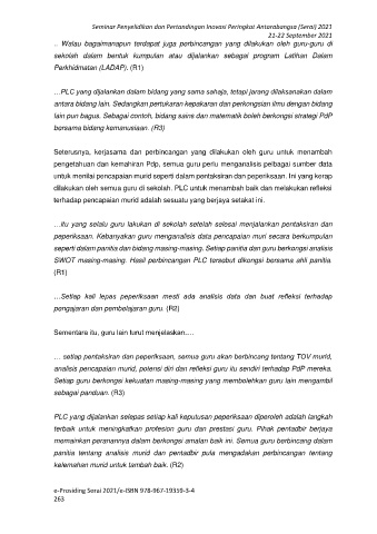 dilakukan oleh semua guru di sekolah. PLC untuk menambah baik dan melakukan refleksi