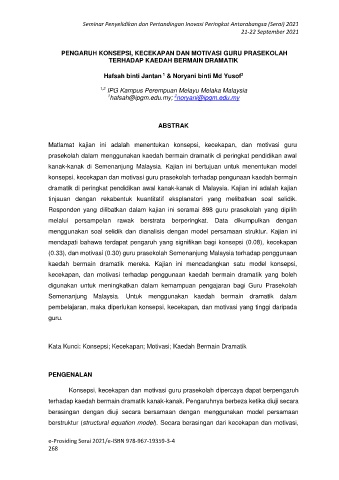 Kata Kunci: Konsepsi; Kecekapan; Motivasi; Kaedah Bermain Dramatik