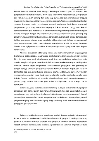 dengan berjaya termasuk penggunaan kaedah bermain dramatik. Keputusan kajian ini