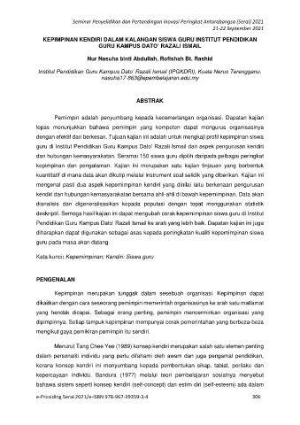 KEPIMPINAN KENDIRI DALAM KALANGAN SISWA GURU INSTITUT PENDIDIKAN