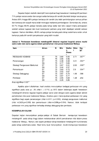 tradisional Melayu. Namun, dari aspek penilaian tahap kesedaran metakognitif murid berada