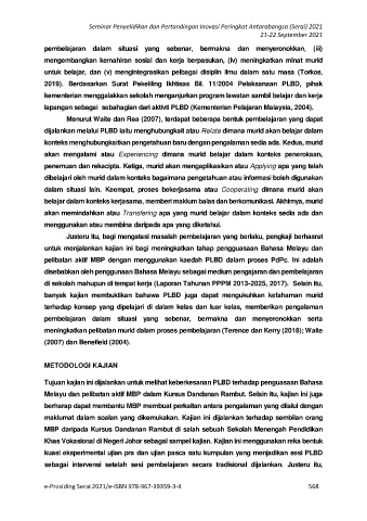 pembelajaran dalam situasi yang sebenar, bermakna dan menyeronokkan serta
