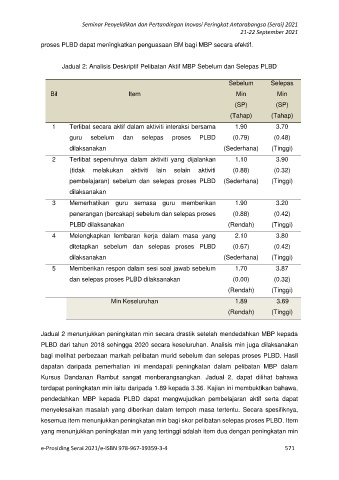 Jadual 2: Analisis Deskriptif Pelibatan Aktif MBP Sebelum dan Selepas PLBD