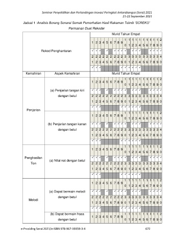 Jadual 1 :Analisis Borang Senarai Semak Pemerhatian Hasil Rakaman Teknik ‘SCREKO’