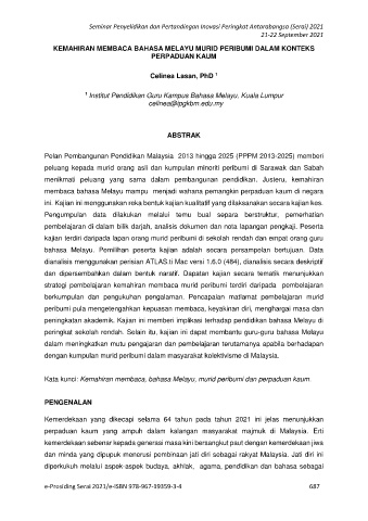 Kata kunci: Kemahiran membaca, bahasa Melayu, murid peribumi dan perpaduan kaum.
