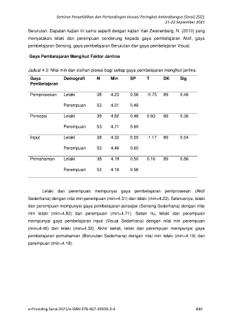 (min=4.46) dan lelaki (min=4.32). Akhir sekali, lelaki dan perempuan mempunyai gaya