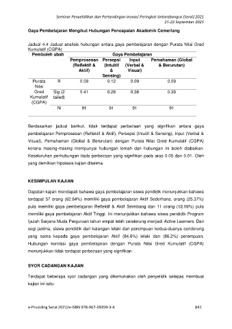 Jadual 4.4 Jadual analisis hubungan antara gaya pembelajaran dengan Purata Nilai Gred