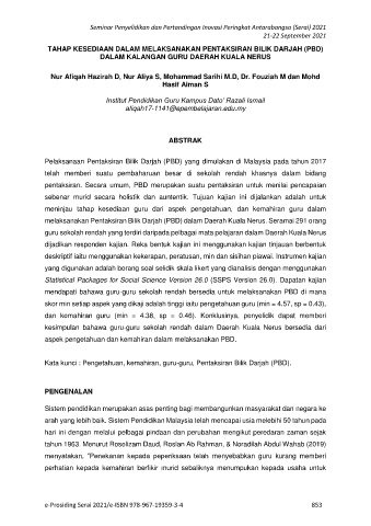 Kata kunci : Pengetahuan, kemahiran, guru-guru, Pentaksiran Bilik Darjah (PBD).