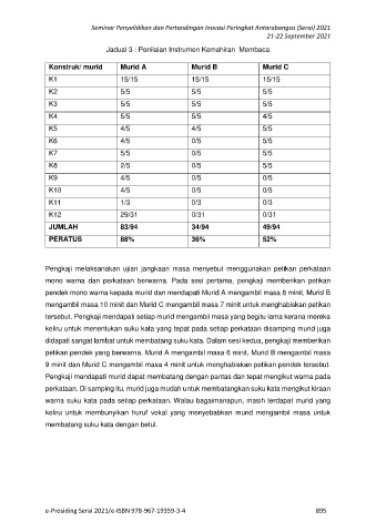 Jadual 3 : Penilaian Instrumen Kemahiran Membaca