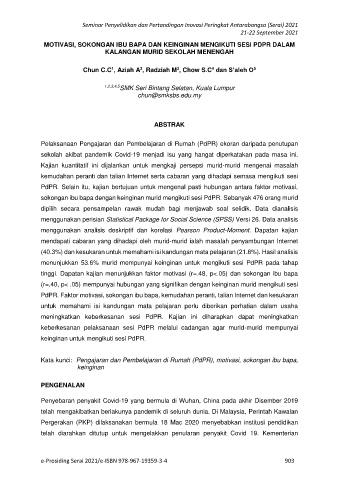 Kata kunci: Pengajaran dan Pembelajaran di Rumah (PdPR), motivasi, sokongan ibu bapa,