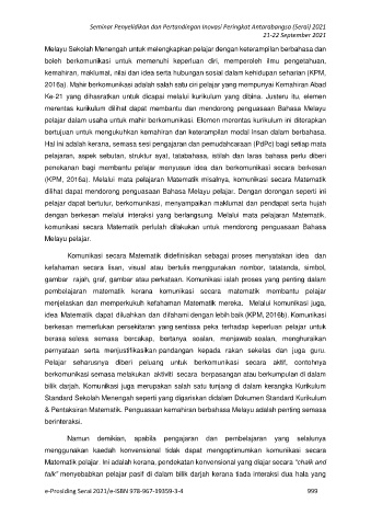 idea Matematik dapat diluahkan dan difahami dengan lebih baik (KPM, 2016b). Komunikasi