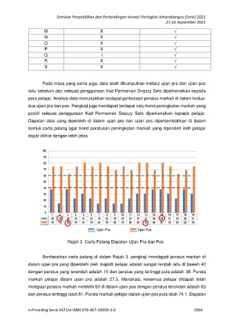 dua ujian pra dan pos. Pengkaji juga mendapati terdapat satu trend peningkatan markah yang