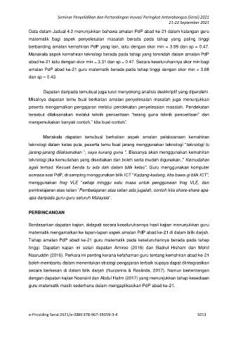 Data dalam Jadual 4.2 menunjukkan bahawa amalan PdP abad ke-21 dalam kalangan guru