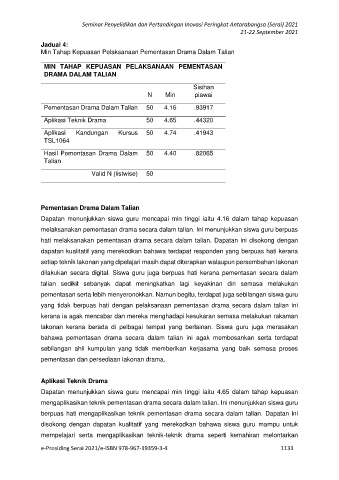 melaksanakan pementasan drama secara dalam talian. Ini menunjukkan siswa guru berpuas