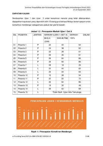 Jadual 1.2 : Pencapaian Markah Ujian 1 Set A
