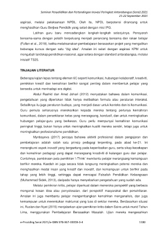 Beberapa kajian lepas tentang elemen 6C seperti komunikasi, hubungan kolaboratif, kreativiti,