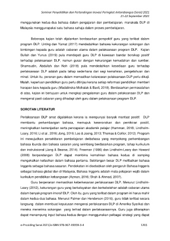 menggunakan kedua-dua bahasa dalam pengajaran dan pembelajaran, manakala DLP di