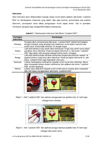 Jadual 2 : Pelaksanaan Intervensi Alat Bantu “Ladybird DiDi”