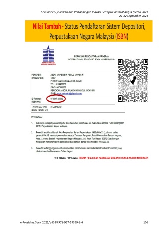 Seminar Penyelidikan dan Pertandingan Inovasi Peringkat Antarabangsa (Serai) 2021 21-22 September 2021 e-Prosiding Serai 2021/e-ISBN 978-967-19359-3-4 106