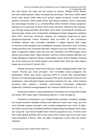 2021)dalam mencorak dan menjadikan gamifikasi sebagai budaya pembelajaran terkini. Masa