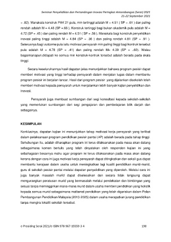 = .82). Manakala konstruk PAK 21 pula, min tertinggi adalah M = 4.51 ( SP = .61 ) dan paling