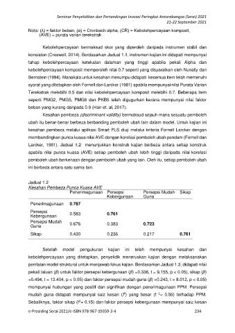 Terekstrak melebihi 0.5 dan nilai kebolehpercayaan komposit melebihi 0.7. Beberapa item