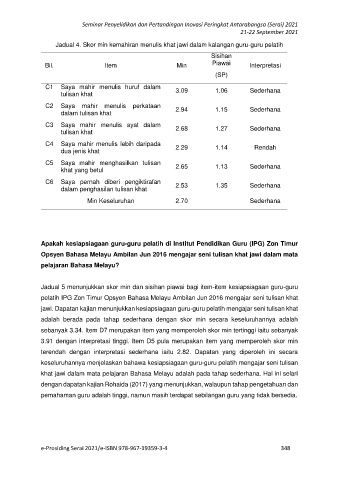 Jadual 4. Skor min kemahiran menulis khat jawi dalam kalangan guru-guru pelatih