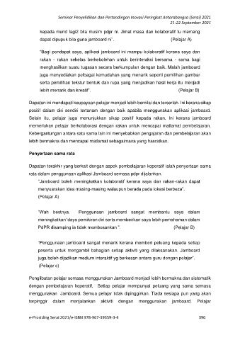 dapat dipupuk bila guna jamboard ni”. (Pelajar A)
