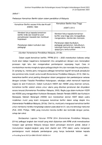 dan pemikiran kritis, kreatif, serta inovatif (Kementerian Pendidikan Malaysia, 2013). Oleh itu,