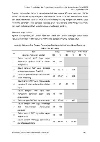 Jadual 2: Bilangan Dan Peratus Persetujuan Bagi Domain Kesihatan Mental Pemimpin