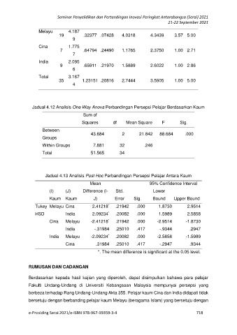 Jadual 4.13 Analisis Post Hoc Perbandingan Persepsi Pelajar Antara Kaum
