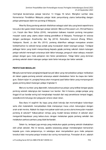 Lim, Faizah dan Noor Safiza (2016), menyatakan bahawa masalah ponteng merupakan