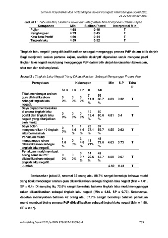 rakan diklasifikasikan sebagai tingkah laku negatif (Min = 4.63, SP = 0.73). Seterusnya,