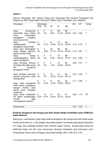 min tinggi. Satu daripada sembilan item kreativiti aspek motivasi berada pada tahap min