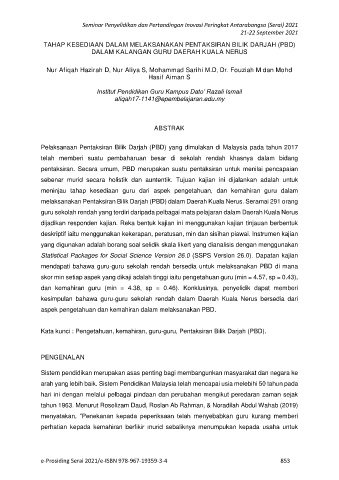 Kata kunci : Pengetahuan, kemahiran, guru-guru, Pentaksiran Bilik Darjah (PBD).
