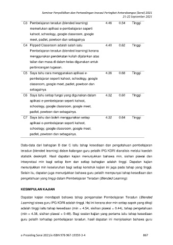 C3 Pembelajaran teradun (blended learning) 4.46 0.54 Tinggi