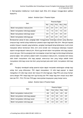 tumpuan bagi menilai tahap kefahaman peserta kajian bagi topik Sifat Jirim. Merujuk kepada