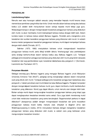 pengaruh L1 dalam penulisan esei murid dalam L2 atau Bahasa Inggeris. Pengkaji menyedari