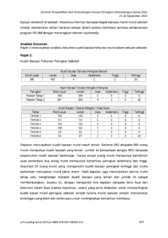 murid mempunyai kualiti bacaan yang lemah. Jumlah ini bersamaan dengan 96% daripada