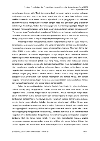 Inggeris Critical Discourse Analysis dalam kajian mereka. Antara hasil kajian yang didapati