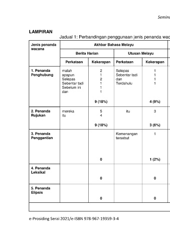 Jadual 1: Perbandingan penggunaan jenis penanda wacana antara akhbar Bahasa Inggeris dan Bahasa Melayu