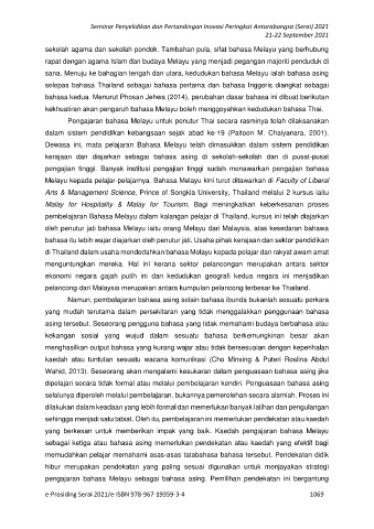 pembelajaran Bahasa Melayu dalam kalangan pelajar di Thailand, kursus ini telah diajarkan