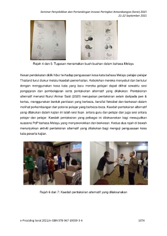 Rajah 4 dan 5: Tugasan menamakan buah-buahan dalam bahasa Melayu