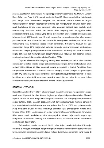 juga menjejaskan interaksi antara guru dan pelajar dan Sharin (2021) mengatakan pelajar