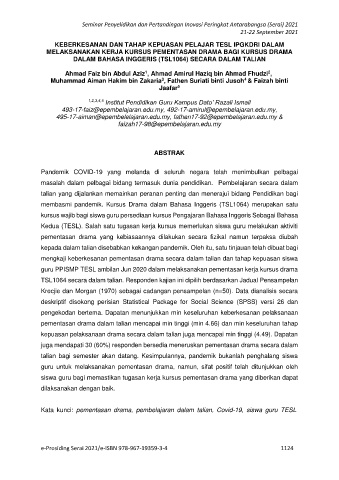 Kata kunci: pementasan drama, pembelajaran dalam talian, Covid-19, siswa guru TESL