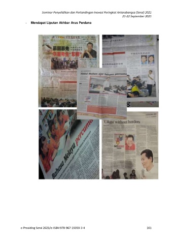 Seminar Penyelidikan dan Pertandingan Inovasi Peringkat Antarabangsa (Serai) 2021 21-22 September 2021 - Mendapat Liputan Akhbar Arus Perdana e-Prosiding Serai 2021/e-ISBN 978-967-19359-3-4 101