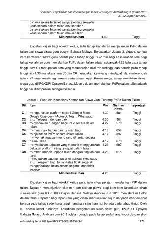Jadual 3 Skor Min Kesediaan Kemahiran Siswa Guru Tentang PdPc Dalam Talian