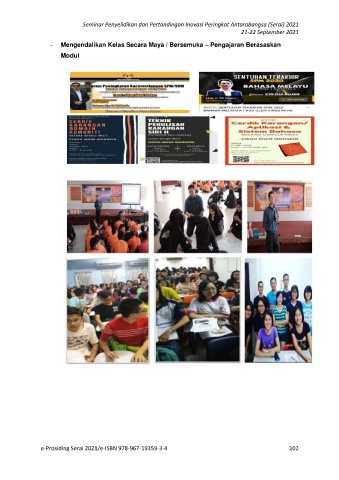Seminar Penyelidikan dan Pertandingan Inovasi Peringkat Antarabangsa (Serai) 2021 21-22 September 2021 - Mengendalikan Kelas Secara Maya / Bersemuka – Pengajaran Berasaskan Modul e-Prosiding Serai 2021/e-ISBN 978-967-19359-3-4 102