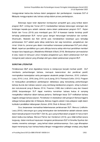 menggunakan kedua-dua bahasa dalam pengajaran dan pembelajaran, manakala DLP di